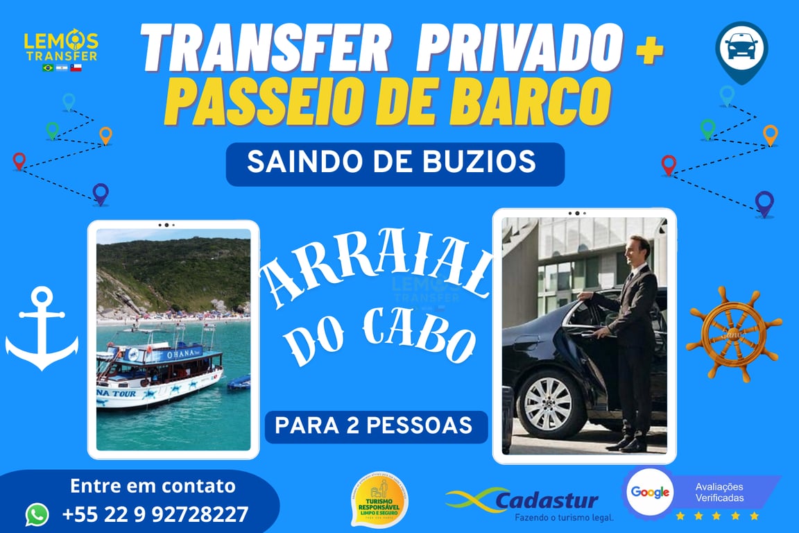 Transfer Privado+ Passeio de barco ( Buzios - Arraial do Cabo) Para até 2 pessoas